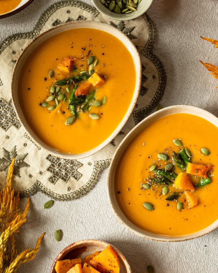 Ugnsrostad pumpa mixad till sammetslen perfektion - len, gyllene och full av smak.